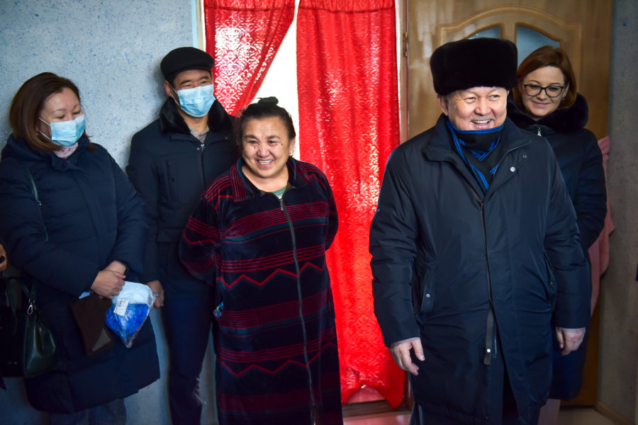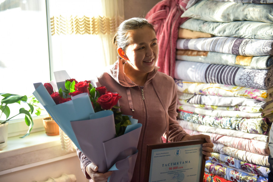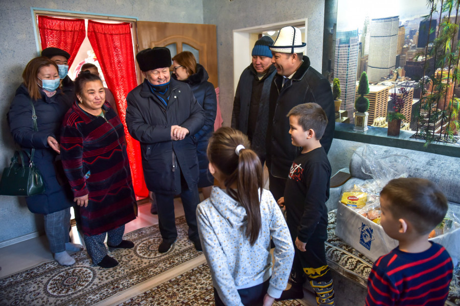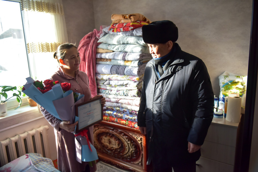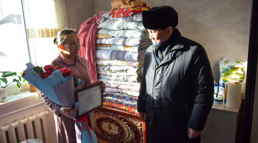 The mayor congratulated the family on the replenishment and presented a certificate for the amount of 90 thousand soms and a grocery basket.