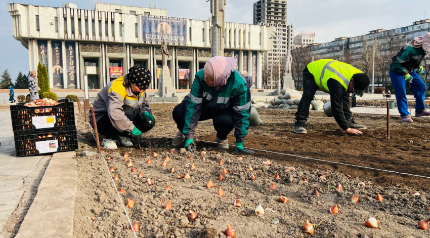 The autumn planting is carried out in advance so that residents and guests of Bishkek can fully enjoy the vibrant spring bloom. As part of this work, an additional 2,000 bulbs of various varieties and colors — red, pink, white, yellow, purple, and other ornamental types — will be planted.