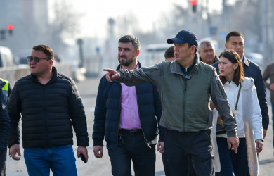 Мэр Жибек жолу проспектисинде курулуп жаткан көпүрөгө барды