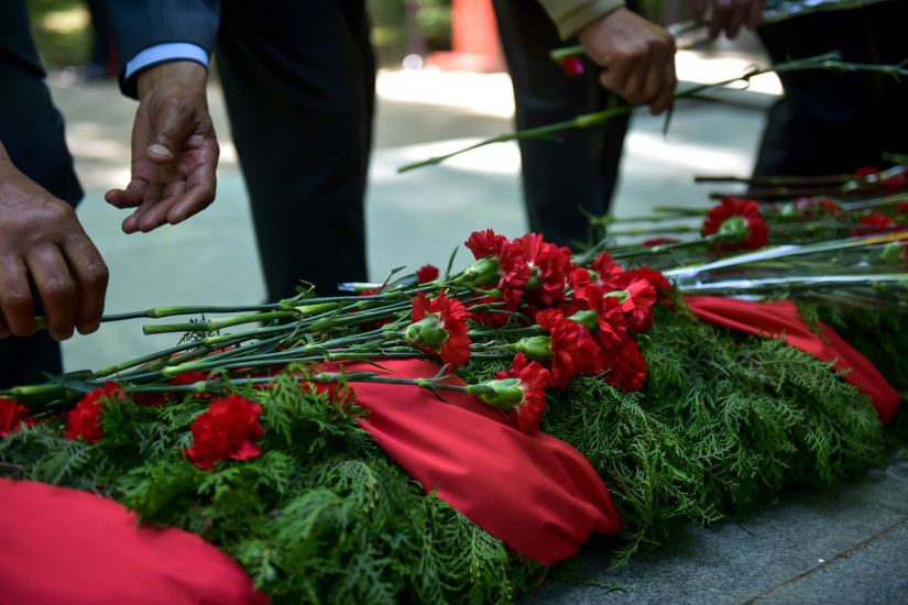 Иш-чара эстеликке гүл коюу менен башталып, «Жалгыз аялдын үнү» музыкалык чыгармасы жаңырды. Андан соң каза болгондорду эскерүү үчүн бир мүнөт унчукпай туруу жарыяланып, үч жолу залп менен ок атылды.