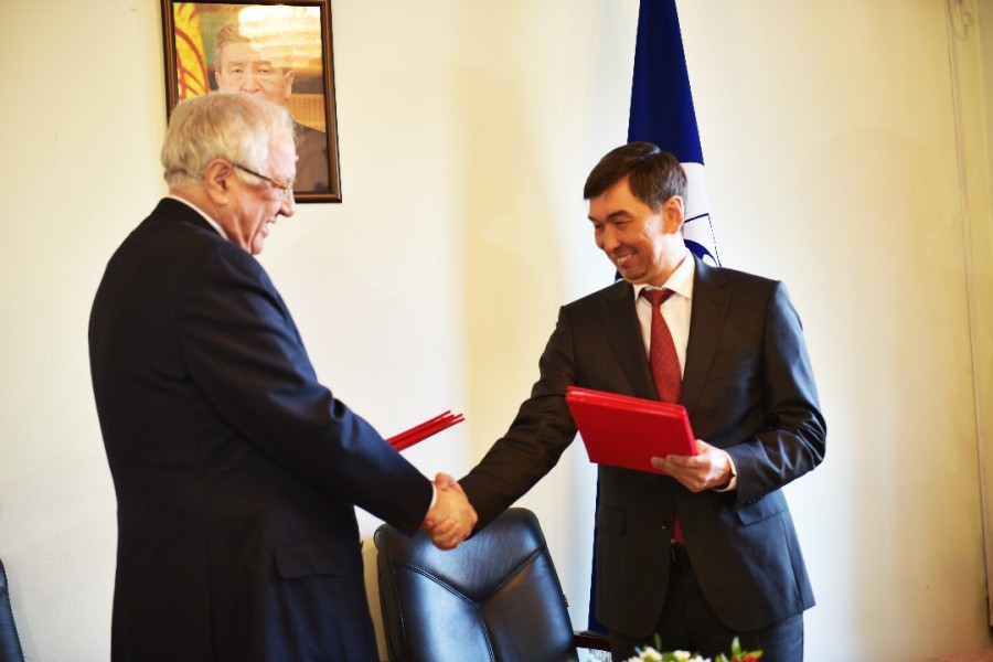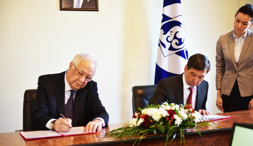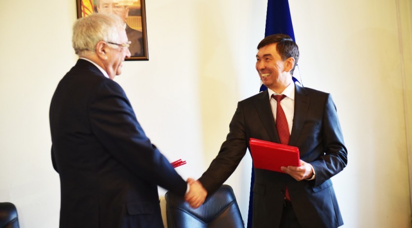 Документке калаа башчысы Азиз Суракматов жана Кыргыз Республикасындагы Азербайжан Республикасынын Атайын Ыйгарымдуу Элчиси Гидаят Худуш оглы Оруджев мырза кол коюшту.