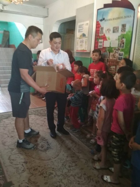 Октябрь районунун башчысы Максим Ситников №1 - учук оорусун дарылаган бейтапканага жана атайлаштырылган Балдар үйүнө белектерди алып барды.