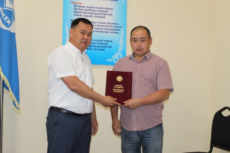 Кеңешменин башында өрткө каршы кызматынын күнүнө карата ак ниет үзүрлүү эмгеги үчүн бир катар кызматкерлер муниципалдык администрациянын ардак грамоталары жана алкыш баракчалары менен сыйланышты.