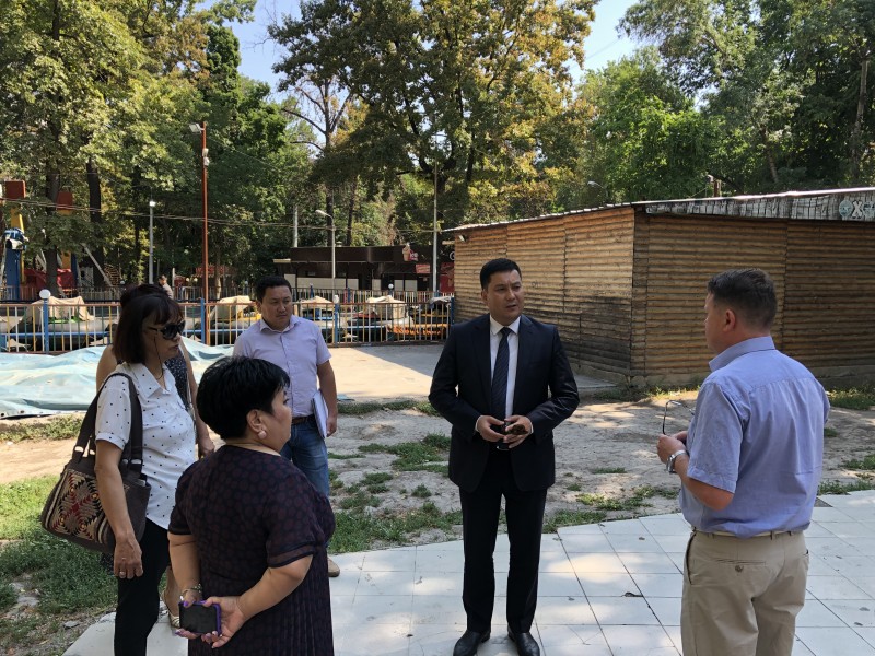 Бишкек шаарынын мэриясынын муниципалдык мүлк башкармалыгынын жетекчиси Нурдин Тынаев «Шаардык парктар» муниципалдык ишканасынын башчысы Калича Умуралиева менен биргеликте текшерүү иштерин уюштурушту.