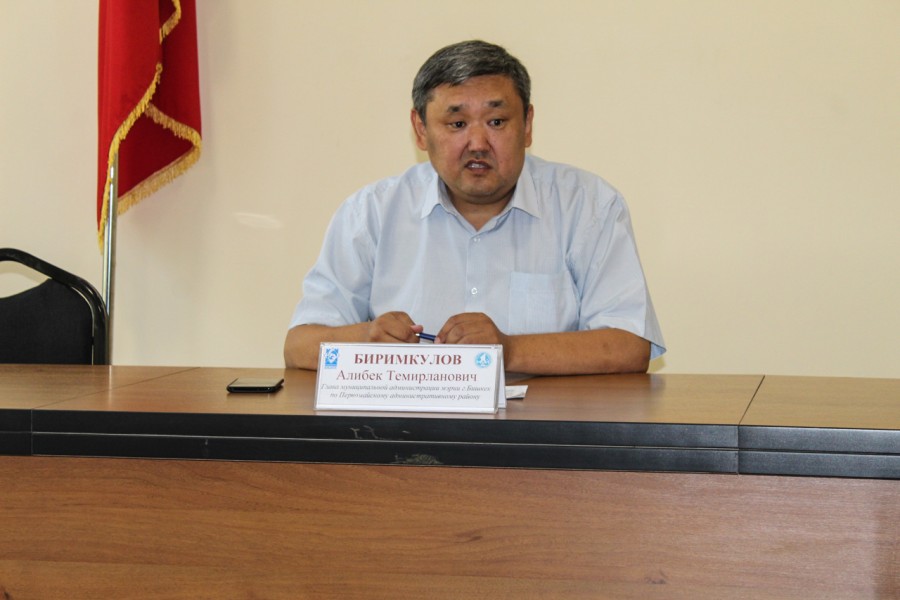 Биринчи май районунун акими Алибек Биримкулов райондун тургундары менен кезектеги кабыл алуусун МАБдардын башчылары, райондук кызматтардын башчыларынын катышуусу менен өткөрдү