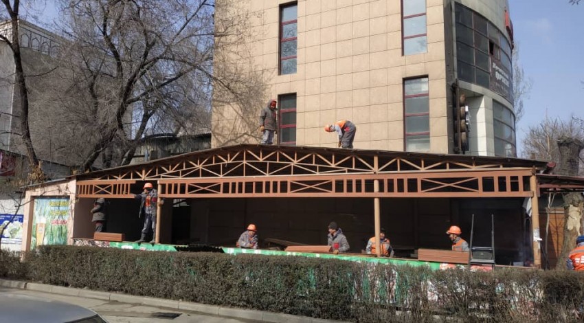 Шаардыктарга ынгайсыздык жараткан, Чокморов менен Уметалиев көчөлөрүнүн кесилишинде уруксат берүүчү документтери жок курулган "Кечки Фрунзе" кафеси бузулду.