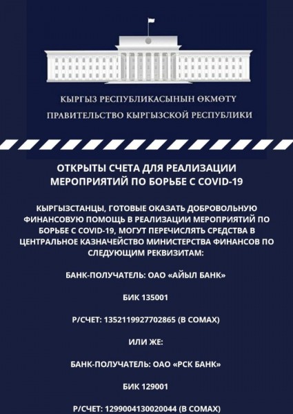 Для того чтобы каждый квант добра дошел до каждого нуждающегося горожанина мэрия города Бишкек открывает специальный счет.