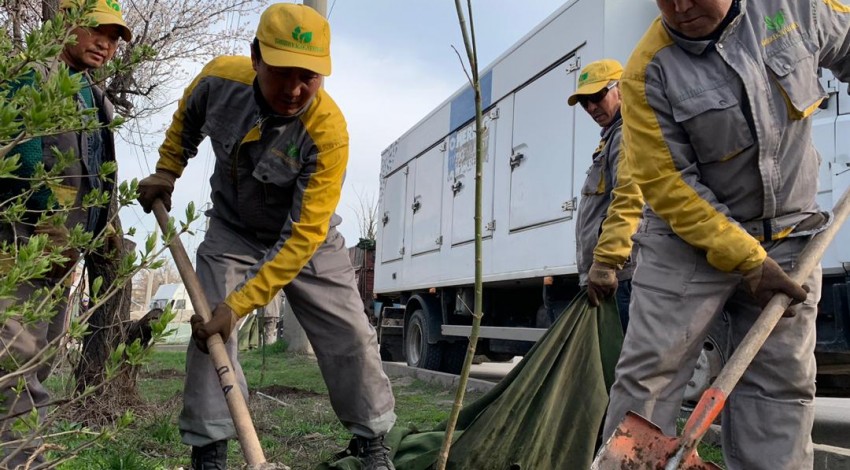 "Бишкекжашылчарба" муниципалдык ишканасы жазгы отургузуу иштерин улантууда. Бүгүнкү күнгө карата 4700дөн ашуун жалбырактуу дарактардын көчөттөрү отургузулду.