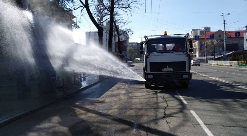 Бул жолу дезинфекция иштерине “Тазалыктын” 64 кызматкери, 27 сугарып-жуучу унаа жана "Беларус" кичи-тракторлору менен тартылган болчу. Жууп-тазалоо үчүн Мамлекеттик санэпидемемиялык көзөмөлүнүн алдында кальций гипохлорит эритмеси колдонулууда.