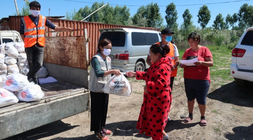 Бүгүн World Share коомдук кайрымдуулук фондунун тобу Свердлов районунун "Дордой", "Дордой-2" жана "Келечек" жаңы конуштарынын 130 үй-бүлөөсүнө колдоо көрсөтүп, азык-түлүк себеттерин таратышты.