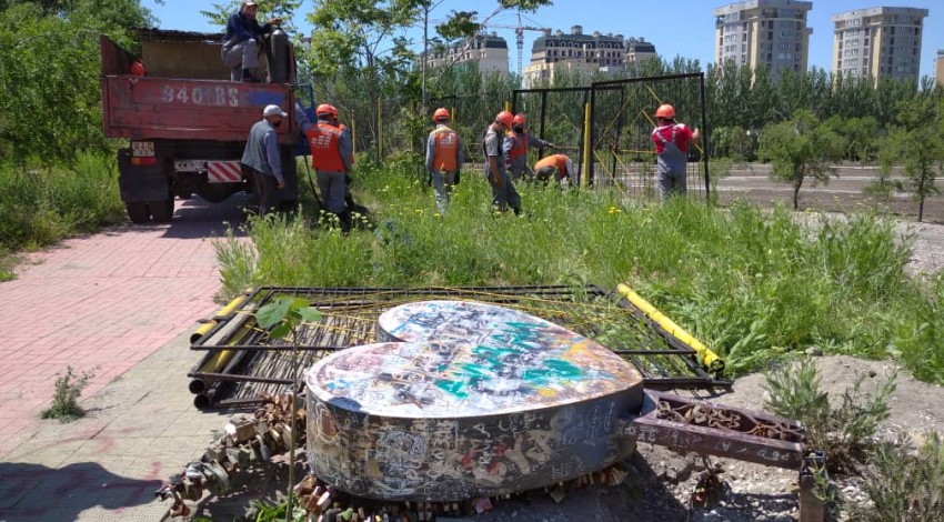 Жерди пайдалануу жана курулуш башкармалыгынын жана "Тазалык" МИнын атайын бөлүмүнүн кызматкерлери коомдук мейкиндикти жакшыртуу үчүн шаарды мыйзамсыз орнотулган объекттердин туткунунан бошотууну улантууда.