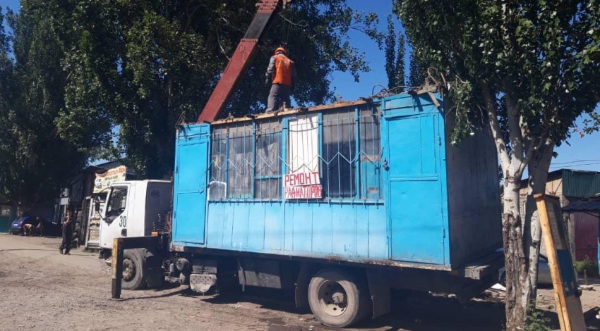 Жерди пайдалануу жана курулуш башкармалыгы менен "Тазалык" МИнын атайын бөлүмүнүн кызматкерлеринин адаттагы күнү мыйзамсыз орнотулган павильондорду демонтаждоо менен башталат.