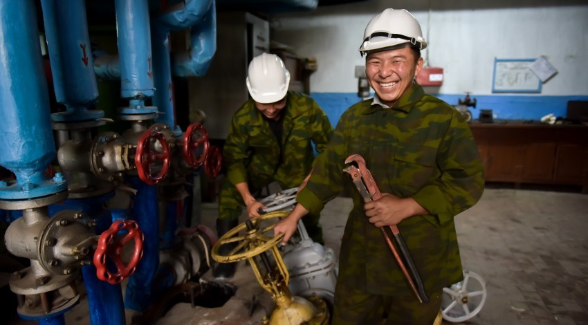 Биздин адситер эскирген бекитүүчү арматура жана түтүктөрдү, ысык суу жабдылган түтүктөрдүн сынган жерлерин алмаштырып, элеватордук түйүндөрдү оңдоп жатышат.