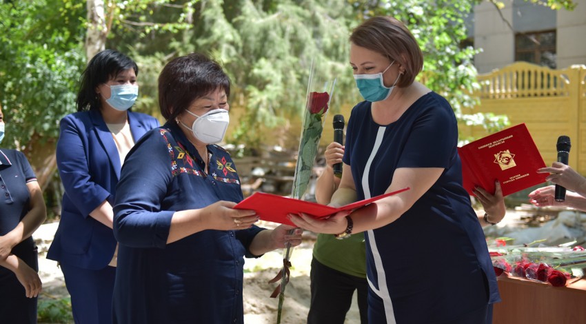Медицина кызматкерлеринин күнүнүн урматына социалдык маселелер боюнча вице-мэр Татьяна Кузнецова ар бир кызматкерге ыраазычылык билдирип, өзгөчөлөнгөн кызматкерлерге ардак грамоталарын жана баалуу белектерди тапшырды.