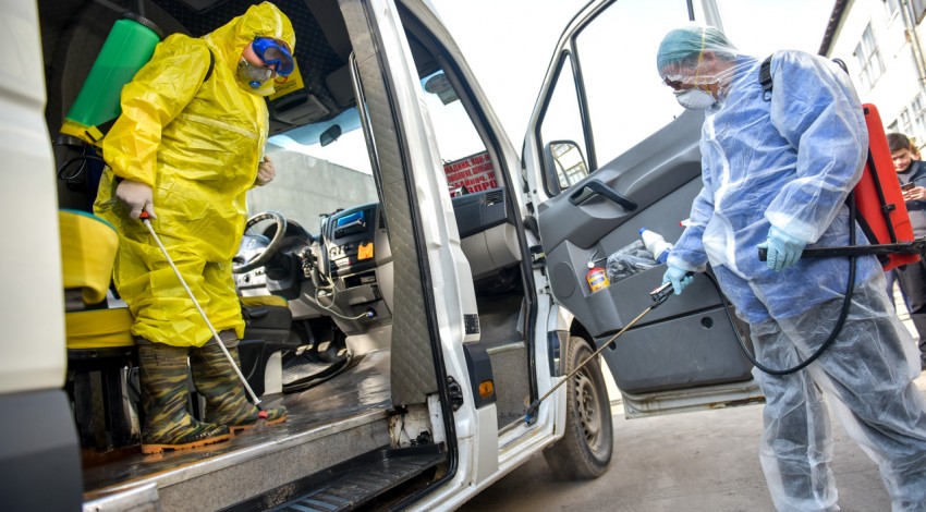 Стамбул муниципалитетинин кызматкерлери дайыма дезинфекция жүргүзүп турушат. Иранда өрт өчүргүчтөр көчөлөрдү дезинфекциялашат. Санитардык кызматкерлер Манила (Филиппин) көчөлөрүндө, ошондой эле дүйнөнүн башка шаарларында антисептик чачышат.