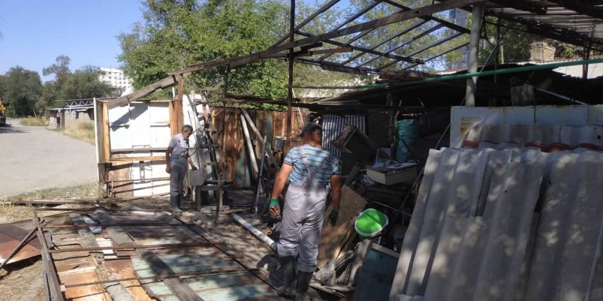 Жер пайдалануу жана курулуш башкармалыгы менен «Тазалык» муниципалдык ишканасынын кызматкерлери пандемия шарттарына карабай мыйзамсыз орнотулган объектилерди түрттүрүү иштерин улантууда.