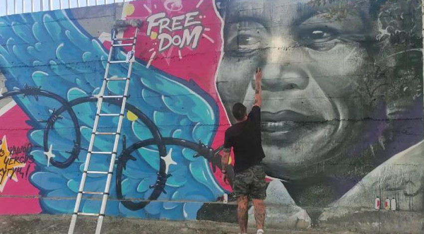 Стрит-арт долбоору «Эркиндик үнү» коомдук фондунун демилгеси жана мэриянын Экономика жана инвестиция департаментинин, «Бишкекбашкыархитектура» муниципалдык ишканасынын колдоосу менен БУУнун кыйноолордун курмандыктарын колдоо эл аралык күнүнө жана Нельсон Манделанын эл аралык күнүнө карата тартылды.