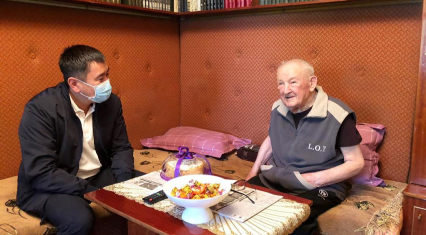 Октябрь районунун акими Азамат Дороев Дүйнөлүк Ата-Мекендик согуштун ардагери Голиков Иван Николаевичке барып, 100 жашка чыгышы менен куттуктады.