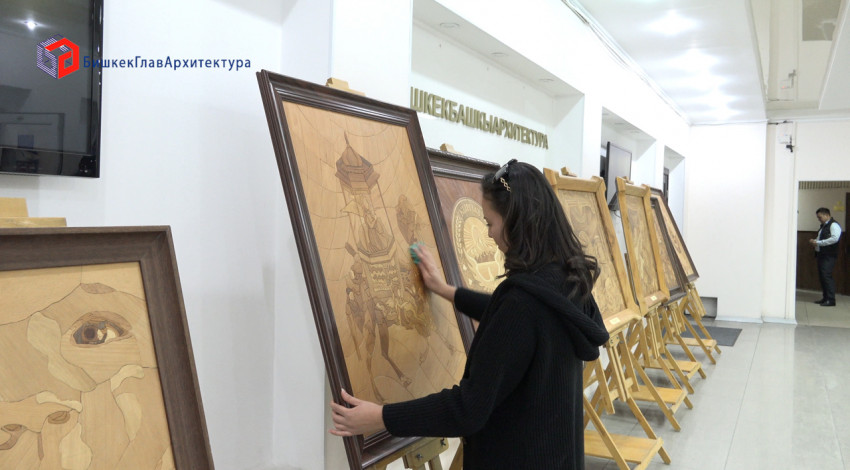 Ал ишкананын фойесинде, жумуш учурунда эле уникалдуу сүрөт топтомунун көргөзмөсүн даярдаган. Эми ар бир жаран бизге келип, интарсия техникасында тартылган сүрөттөрдү көрө алышат.