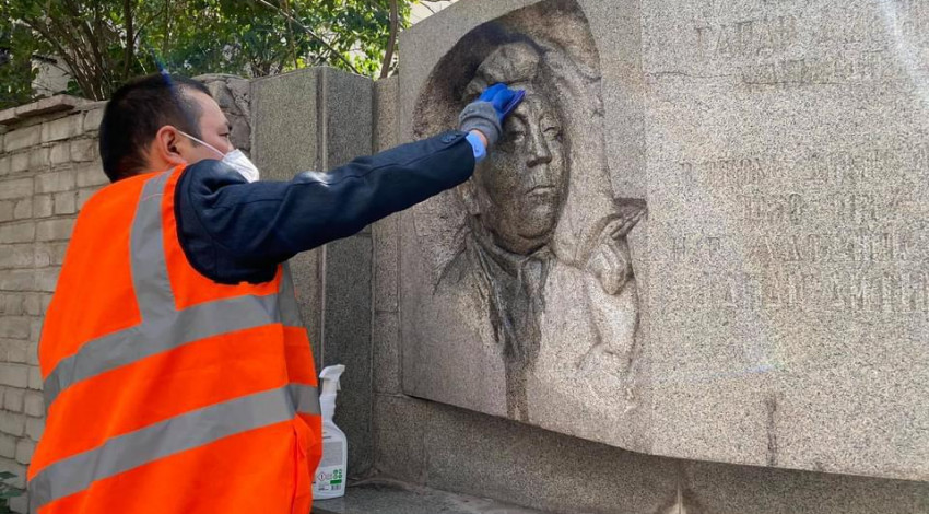 Аталган дарекке «Тазалык» муниципалдык ишканасынын кызматкерлери дароо барып, эстеликти жууп тазалашты.
