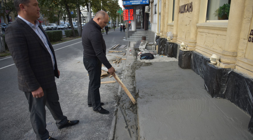 Бизге Манас проспектиси жана Киев көчөсүнүн кесилишинде, тротуардын үстүнө цемет аралашмасын даярдап жатат деген билдирүү келип түшкөн.