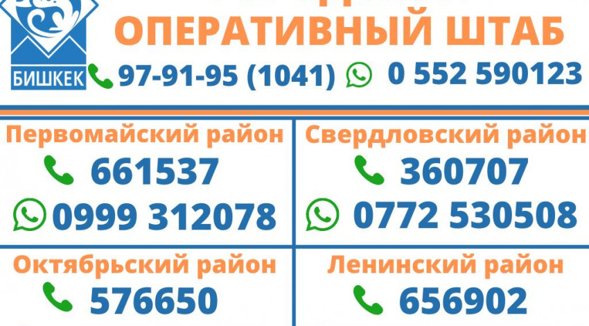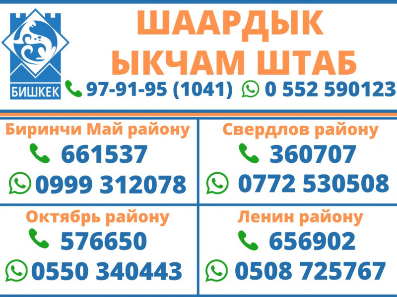 Шаардык ыкчам штаб: 97-91-95 (1041) факс: 61-01-70, 0 552 590 123(билдирүү үчүн WhatsApp)