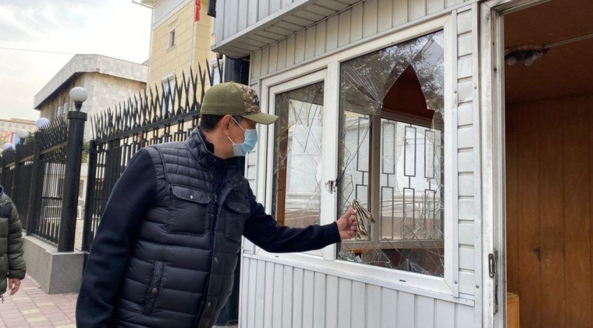 Акыркы үч күндүн ичинде митингдерде белгисиз адамдар шаардын мүлкүнө зыян келтиришти. Муниципалитеттин башчысы Азиз Суракматов турак-жай коммуналдык чарба иштери боюнча вице-мэр Алымбек Абдылдаев жана шаардык кызматтардын башчылары менен биргеликте “жабыркаган” көчөлөрдү жана кварталдарды кыдырып, келтирилген чыгымдарды алдын-ала эсептеп чыгышты.