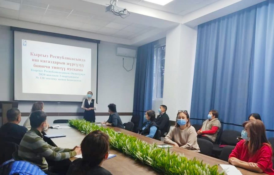 Бишкек шаарынын мэриясынын Мамлекеттик тилди өнүктүрүү бөлүмү «Бишкекшаарлифт» МИнин, «Бишкексууканал» ӨЭБнин, “Бишкек санитардык полигону” МИнин, Санитардык экологиялык инспекциясынын кызматкерлери үчүн, санитардык эрежелерди жана аралыктарды сактоо менен, “Иш кагаздарын мамлекеттик тилде жүргүзүү” деген темада окутуучу семинарларды өткөрдү.