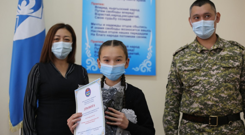 Октябрь районунда 7 мектептин жана балдардын чыгармачылык борборунун 32 окуучусуна жана сынактын жеңүүчүлөрүнө эстеликке белектер тапшырылды.