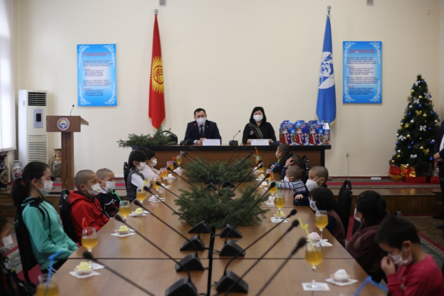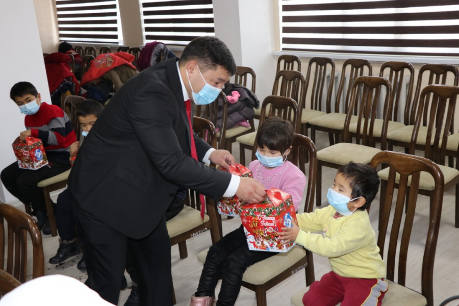 Ленин районунун башчысы Чынасыл Чыныбаев турмуштук оор кырдаалда турган балдарга таттуу белектерин тапшырды. Таттууларды райондон 30 бала алды.
