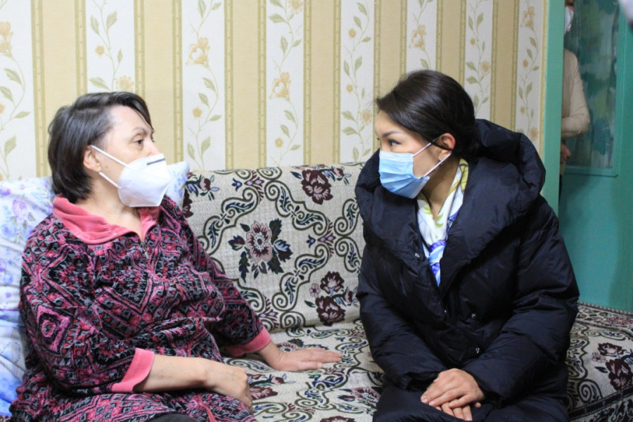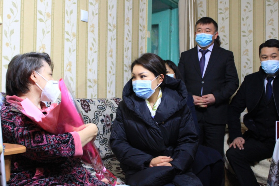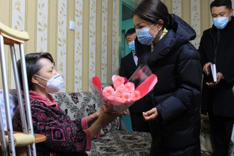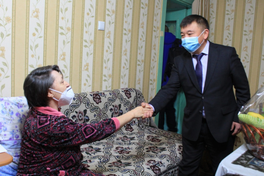 Вице-премьер-министр Кыргыз Республикасынын Өкмөтүнүн атынан аларды келе жаткан жаңы жыл майрамы менен куттуктап, материалдык жардам берди.