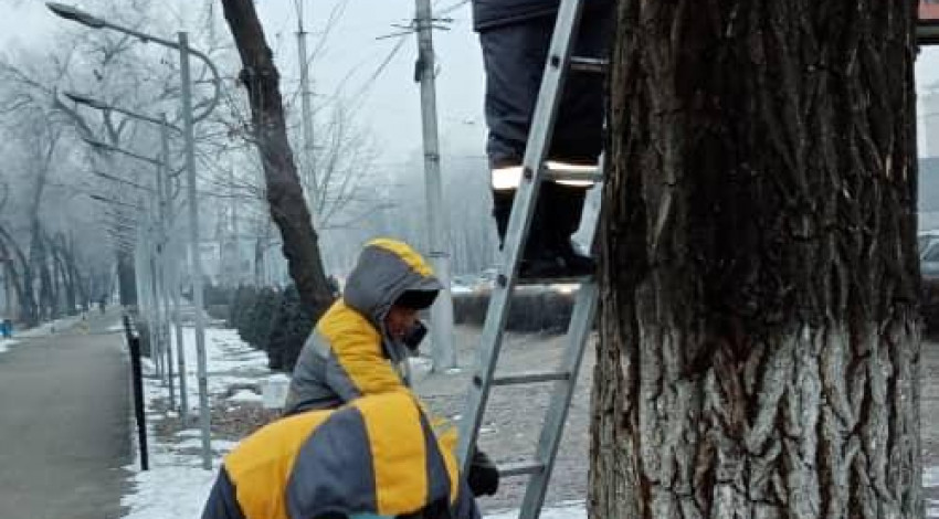 Таң эртеден баштап шаардын көчөлөрүндө багбандардын техникалары нөөмөттө турушат. Ишкананын кызматкерлери М.Горький көчөсүндө, Чүй проспектиси - Сүйүмбаев көчөсү, Чүй проспектиси- Осмонкул көчөсү, М.Фрунзе, П.Лумумбы көчөлөрүндө, Ч.Айтматов проспектиси, Эркиндик бульвары жана Фучик көчөсүндө куураган бутактарды бутоо иштерин жүргүзүштү.