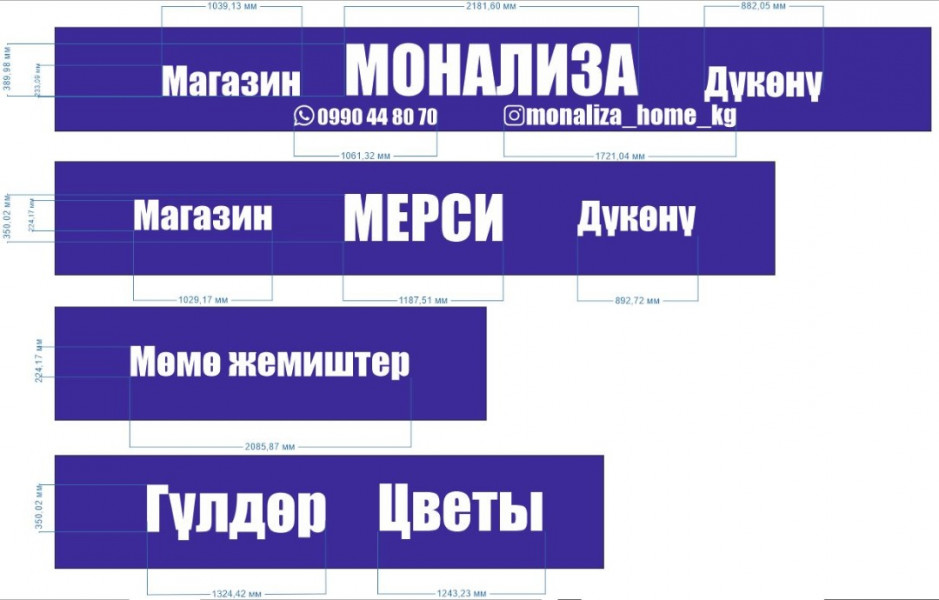 Биздин адистер соода түйүндөрүнүн тышкы көрүнүшүнүн эскизинин бир нече варианттарын бекер иштеп чыгышкан. Андан соң ишкерлерге сунуш кылышты. Жакында эле шаардык ишкерлер биздин сунуштар боюнча Үсөнбай жана Москва көчөлөрүндөгү өзүнүн дүкөндөрүнүн сырткы көрүнүшүн өз калыбына келтиришти. Эми күркөлөрдөгү жазуулардын түсү жана шрифтти бирдиктүү стилде.