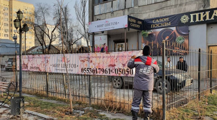 Уруксатсыз орнотулган объектилердин ээлери менен түшүндүрүү иштерин жүргүзүлүүдѳ, Учкун кичи районундагы ээси жок күркөлөр, Айни көчөсүндөгү тоок гриль пункту жана Чыңгыз Айтматов проспектисинин боюндагы жарнак баннерлери алынды.