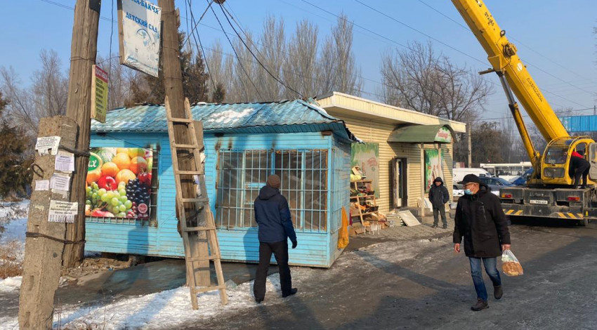 Мессарош жана Ильменский көчөлөрүнүн кесилишиндеги күркө ээлеринин уруксат кагаздары жок болгондуктан, ал дагы алынып салынды.