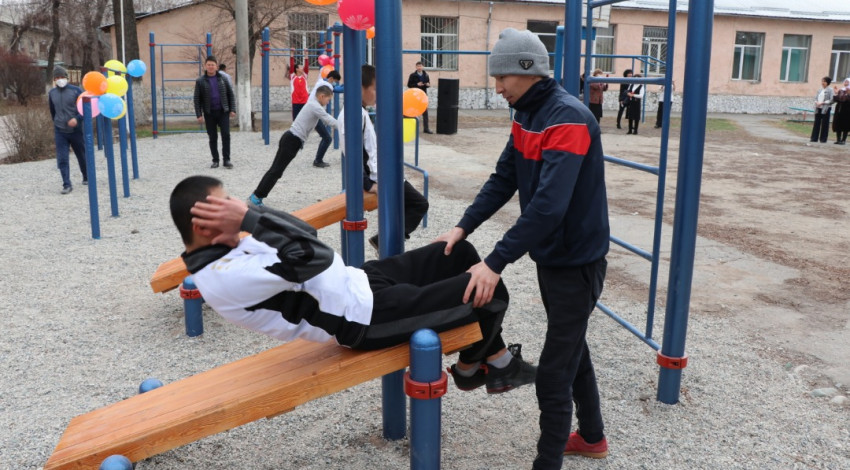 Бул жерге ачык спорт менен машыгуу жана ден-соолукту чыңдоо үчүн заманбап шаймандар менен жабдуулар орнотулду.