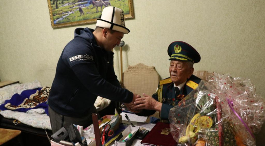 Октябрь жана Ленин райондорунун жетекчилери четте калышкан жок, майрамдын урматына Улуу Ата Мекендик согуштун ардагерлерине барып, куттукташты.