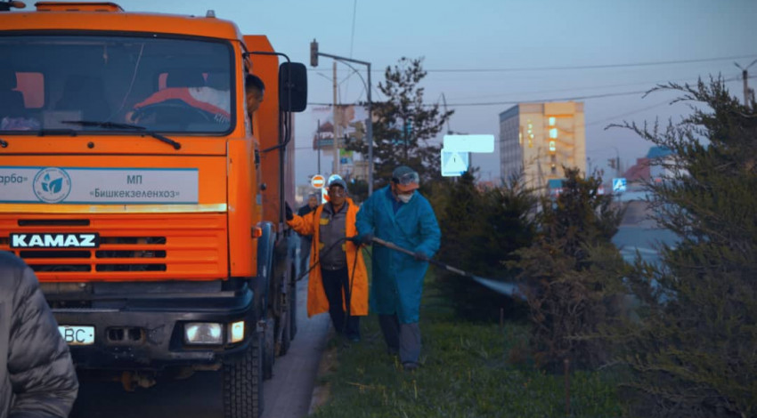 Таң эрте Чортеков жана Жайыл-Баатыр көчөлөрүнүн кесилишинде, Манас проспектиси Бөкөнбаев көчөлөрүнүн кесилишинде, Масалиев көчөсүн Чортеков көчөсүнөн Табалдиев көчөсүнө чейин бактарга витамин чачуу иштерин жүргүздүк.