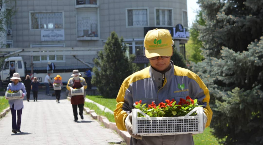 Так ушул тапта "Бишкекжашылчарбанын" кызматкерлери агератум, сальвиянын бир нече түрүн, тагетелерди, ошондой эле георгина жана цинерарии гүлдөрүн отургузууда.