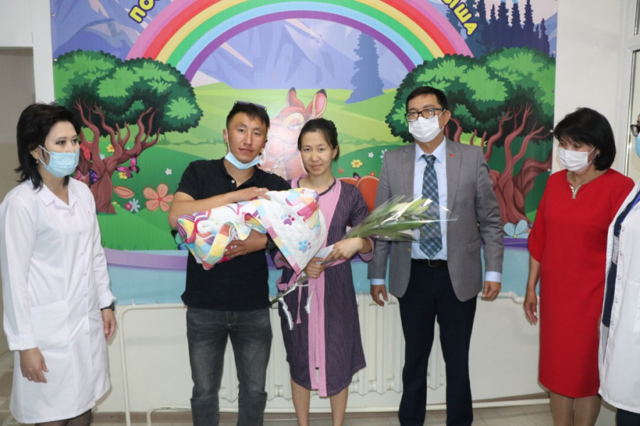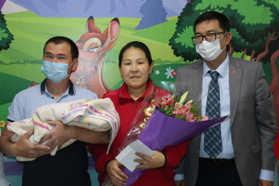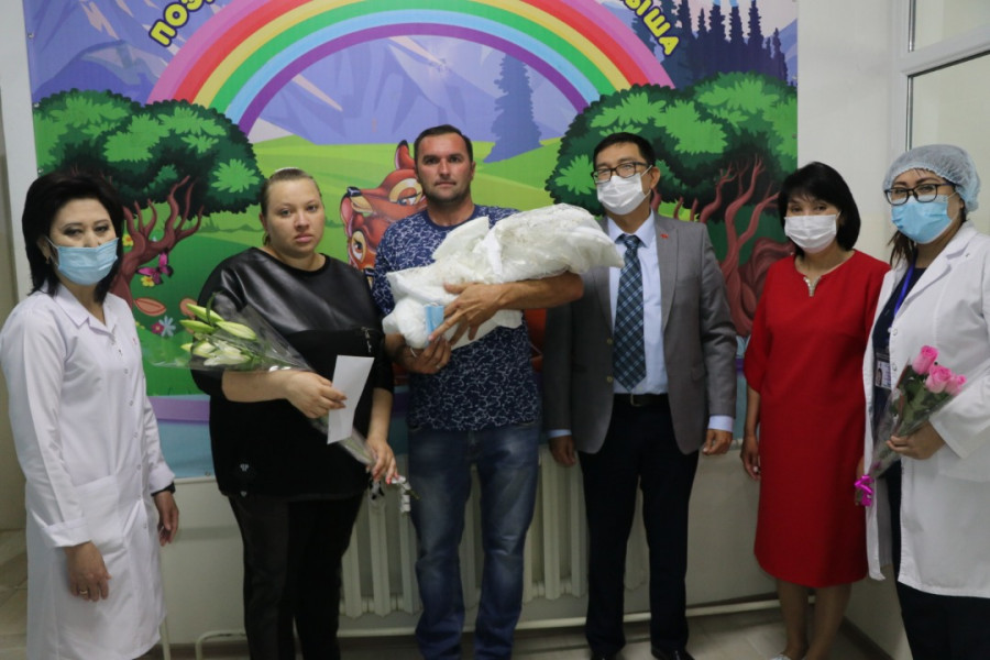 Ошонодой эле район башчысы №2 клиникалык төрөт үйүндөгү энелерди дагы куттуктап, белектерин берди.