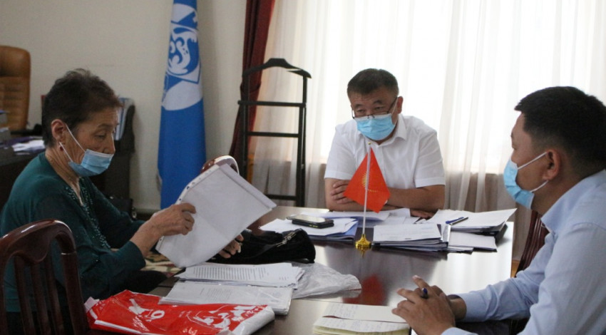 Октябрь районунун башчысы Данияр Арпачиев санитардык эрежелерди сактоо менен борбордун тургундарын жеке кабыл алды.
