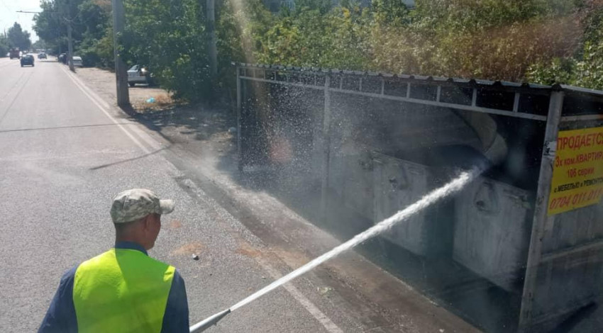Бишкек шаарында "Тазалык" муниципалдык ишканасынын кызматкерлери тарабынан бир миң контейнер жана 200 контейнерлер орнотулган аянттар жуулду. Ошондой эле тазалоо менен катар таштанды челектери оңдолуп, талкаланган, уурдалган дөңгөлөктөр алмаштырылууда. 323 дөңгөлөк калыбына келтирилди.