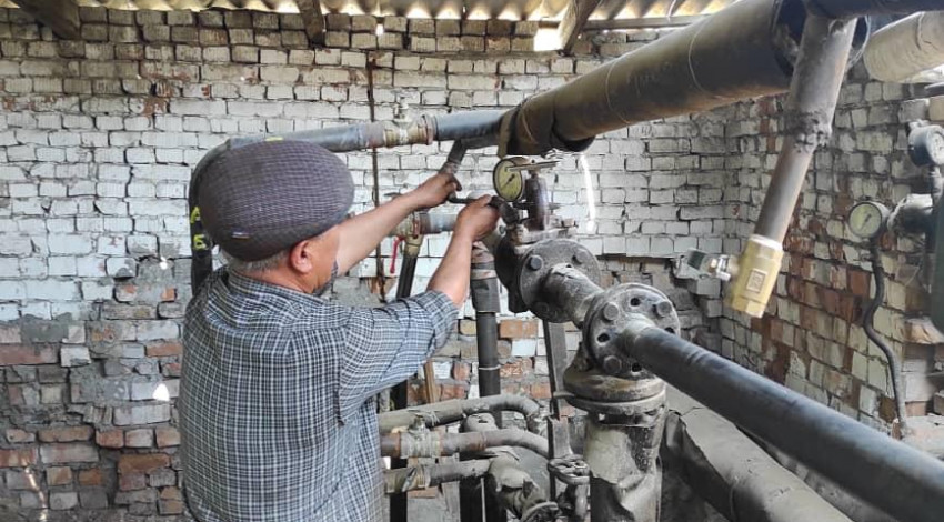 Адистер от казандарын, желдеткичтерди, ХВО чыпкаларын, жылуулук камераларындагы клапандарды жана казан приборлорун оңдоону жүргүзүшүүдө.