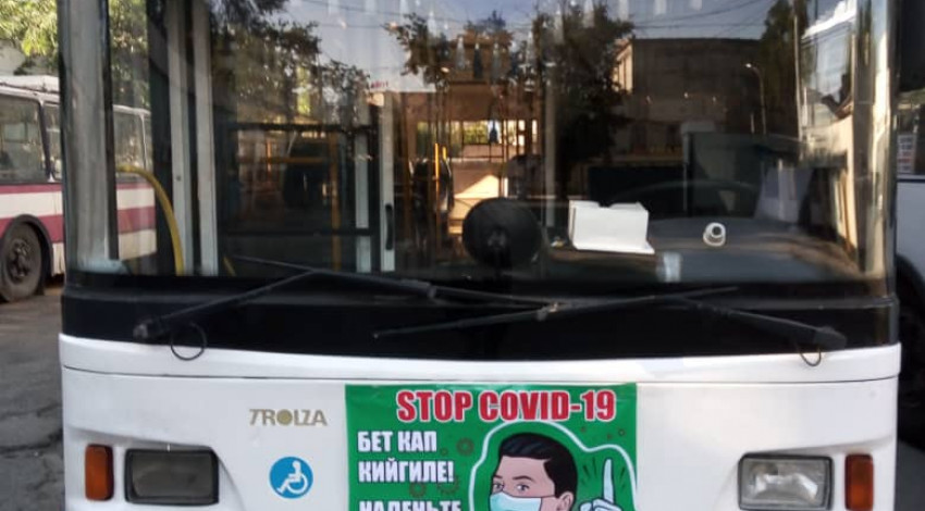 Троллейбус жана автобустарда бет кап режимин сактоону эскерткен баннерлер илинди.
