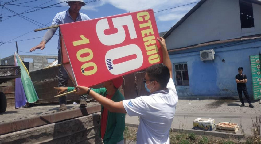 Ленин райондук акимиатынын кызматкерлери Ош базарында кайрадан рейд жүргүзүштү. Соодада колдонулган ар кандай 38ден ашуун объектилер, конструкциялар(күндөн калкалоочу чатырлар, столдор, отургучтар, мамылар, майда-барат ташуучу коляскалар) алынды. Ошондой эле, сатуучуларга сооданы чектелген жерден ашпай жүргүзүү боюнча түшүндүрүү иштери жүргүзүлдү.