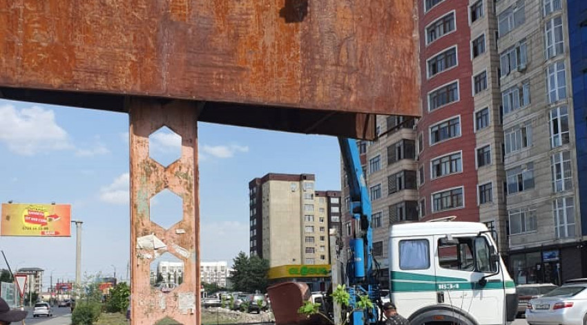 Ахунбаев көчөсүндө тиешелүү документтери жок жарнамалык конструкция алынды.