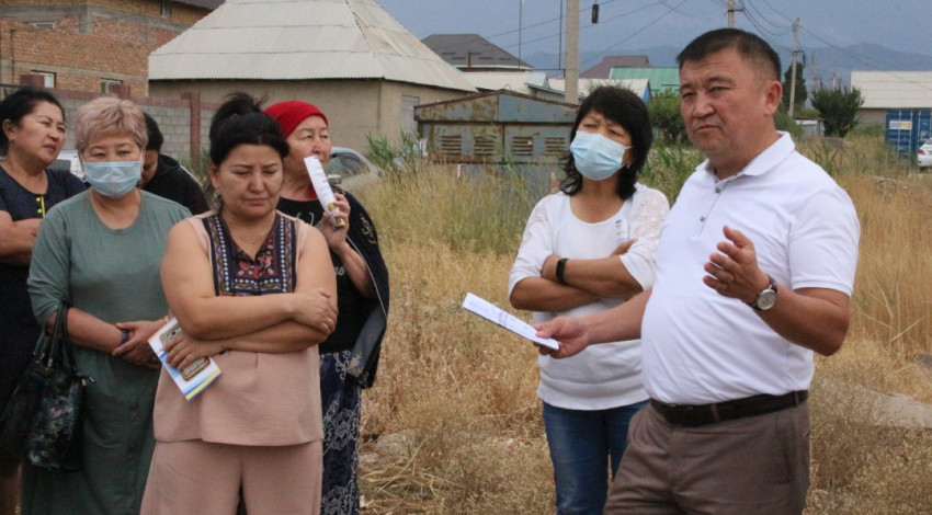 Бүгүн Октябрь районунун башчысы Данияр Арпачиев Бишкек шаарынын тургуну Б.Алиеванын арызы боюнча "Рухий-Мурас" жаңы конушунун жашоочулары менен жолукту.