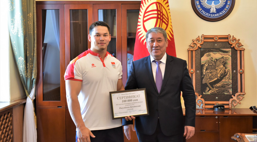 Спорттун эл аралык класстагы чебери Бекдөөлөт Расулбековго 100 000 сомдук сертификат, анын машыктыруучусу СССРдин эмгек сиңирген спорт чебери, Кыргыз ССРинин эмгек сиңирген машыктыруучу Молдодосов Омуржанга 50 000 сомдук сертификат тапшырылды.
