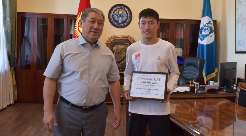 Буга чейин мэр спортчу Бекдөөлт Расулбековду жана анын машыктыруучусу Өмүржан Молдодосовду сыйлаган.