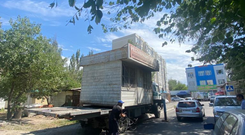 Малдыбаев көчөсүндө мыйзамсыз орнотулган павильон демонтаждалды.